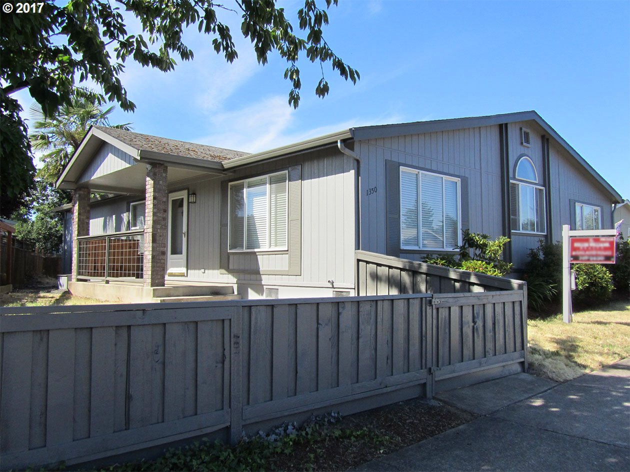 Spacious and bright! Triple-wide manufactured home on its own lot. Features an open layout, vaulted/high ceilings & lots of natural light. Large living rm plus family rm. Kitchen w/ island & eating bar. Large open dining area. Master suite with 2 closets, 1 is a walk-in. Small fenced yard, covered patio. Utility/mud rm w/ storage. Plus 2-car garage. Easy freeway access. Only a 4 min. drive to school & stores. Only 1 block to small park.