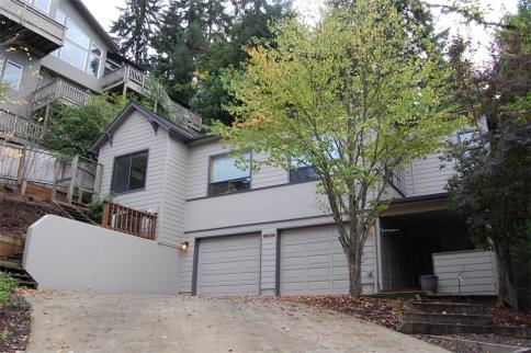 This unique and contemporary home is located in the Southwest hills of Eugene and offers 3 bedrooms, 2.5 bathrooms and approximately 2,096 square feet. A large covered front porch invites you into the home. The entry offers tile flooring, under-stairs storage and a light and bright staircase that leads to the main level. On the entry level you will find a bedroom with double closets, a half bathroom and access to the 2-car garage with an automatic opener and sink.