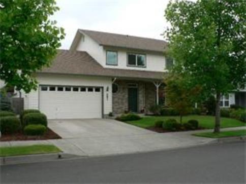This wonderful Santa Clara area home offers 4 bedrooms, 2.5 bathrooms and approximately 2,338 square feet. A covered front porch and a light and bright entry with tile flooring greet you as you step into the home. Just off of the entry is the formal living room and attached formal dining room. The dining room has easy serving access to the kitchen. The great kitchen features oak cabinets, tile counters, a center island, white, built-in appliances, a pantry and disposal. An eating area is conveniently located between the kitchen and family room, creating a great room affect. The family room has a large sliding glass door to the back deck and yard and a gas fireplace. You can also find a half bathroom and a utility room with access to the 2 car garage on the main level. The staircase, up from the entry, has an oak banister and spindles. At the top of the staircase is a great bonus room with storage space that would make a great media, office or guest room. The master suite, 3 more bedrooms and a full bathroom are located on the upper level. The master suite offers a vaulted ceiling, built-ins, a large walk-in closet and a private bathroom with double sinks, tile counters, a skylight and a stall shower.