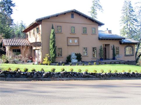 Stunning ICF-constructed, custom home! Earthquake proof, R-55 insulated walls reducing heat loss/gain and external noise, no dryrot or bug infestations due to ARC construction, indoor spa, heated floors, very energy efficient, more fire resistant, French drain system, full house ventilation system and vacuum system. Large master suite with 2 sinks, walk-in closets, sitting areas, soaking tub, bonus room and balcony! Separation of space, skylights, large kitchen, media room, storage/craft room and more! Custom details throughout including milled beams, fireplace with Port Orford mantle, guest room, 5 fountains across landscaping, tea house overlooking gardens! Too much to list!!!